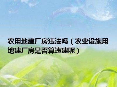 目前大家应该是对农业设施用地建厂房是否算违建呢比较感兴趣的,所以今天CC就来为大家整理了一些关于农业设施用地建厂房是否算违建呢方面的相关知识来分享给大家,希望大家会喜欢哦。