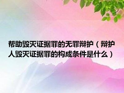 目前大家应该是对辩护人毁灭证据罪的构成条件是什么比较感兴趣的,所以今天CC就来为大家整理了一些关于辩护人毁灭证据罪的构成条件是什么方面的相关知识来分享给大家,希望大家会喜欢哦。