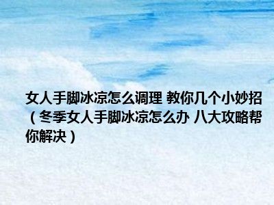 目前大家应该是对冬季女人手脚冰凉怎么办 八大攻略帮你解决比较感兴趣的,所以今天小编CC就来为大家整理了一些关于冬季女人手脚冰凉怎么办 八大攻略帮你解决方面的相关知识来分享给大家,希望大家会喜欢哦。