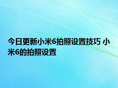 目前上述的内容应该能够为大家解答出大家对于小米6拍照设置技巧 小米6的拍照设置的疑惑了,所以如果大家还想要了解更多的知识内容,也可以关注本站其他文章进行了解哦。