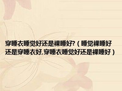 导读目前大家应该是对睡觉裸睡好还是穿睡衣好,穿睡衣睡觉好还是裸睡好比较感兴趣的,所以今天小编CC就来为大家整理了一些关于睡觉裸睡好还是穿...