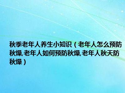目前大家应该是对老年人怎么预防秋燥,老年人如何预防秋燥,老年人秋天防秋燥比较感兴趣的,所以今天小编CC就来为大家整理了一些关于老年人怎么预防秋燥,老年人如何预防秋燥,老年人秋天防秋燥方面的相关知识来分享给大家,希望大家会喜欢哦。