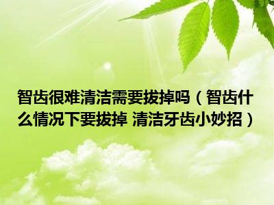 目前大家应该是对智齿什么情况下要拔掉 清洁牙齿小妙招比较感兴趣的,所以今天小编CC就来为大家整理了一些关于智齿什么情况下要拔掉 清洁牙齿小妙招方面的相关知识来分享给大家,希望大家会喜欢哦。