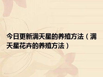目前上述的内容应该能够为大家解答出大家对于满天星的养殖方法(满天星花卉的养殖方法)的疑惑了,所以如果大家还想要了解更多的知识内容,也可以关注本站其他文章进行了解哦。