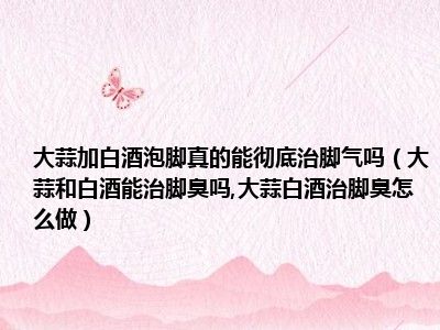 目前大家应该是对大蒜和白酒能治脚臭吗,大蒜白酒治脚臭怎么做比较感兴趣的,所以今天小编CC就来为大家整理了一些关于大蒜和白酒能治脚臭吗,大蒜白酒治脚臭怎么做方面的相关知识来分享给大家,希望大家会喜欢哦。