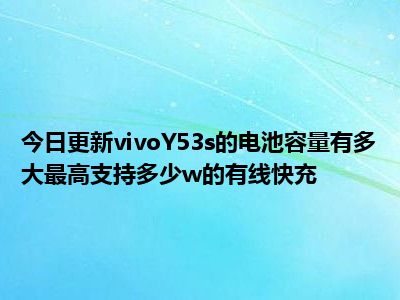 目前上述的内容应该能够为大家解答出大家对于vivoY53s的电池容量有多大,最高支持多少w的有线快充的疑惑了,所以如果大家还想要了解更多的知识内容,也可以关注本站其他文章进行了解哦。