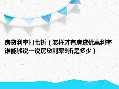 导读 目前大家应该是对怎样才有房贷优惠利率谁能够说一说房贷利率9折是多少比较感兴趣的,所以今天好房网小编CC就来为大家整理了一些关于怎样才