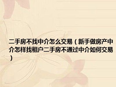 导读 目前大家应该是对新手做房产中介怎样找租户二手房不通过中介如何交易比较感兴趣的,所以今天好房网小编CC就来为大家整理了一些关于新手做房