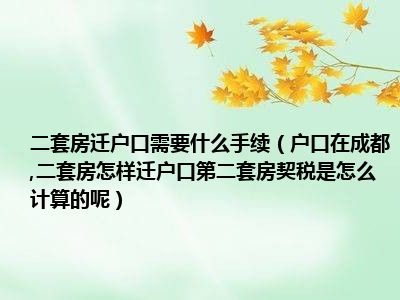 导读 目前大家应该是对户口在成都,二套房怎样迁户口第二套房契税是怎么计算的呢比较感兴趣的,所以今天好房网小编CC就来为大家整理了一些关于户