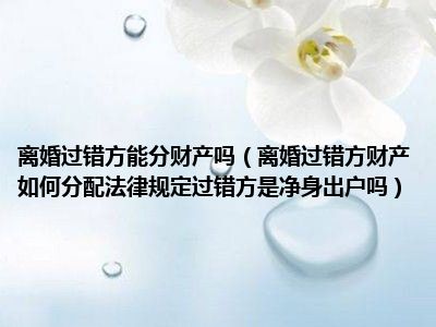 目前大家应该是对离婚过错方财产如何分配法律规定过错方是净身出户吗比较感兴趣的,所以今天CC就来为大家整理了一些关于离婚过错方财产如何分配法律规定过错方是净身出户吗方面的相关知识来分享给大家,希望大家会喜欢哦。