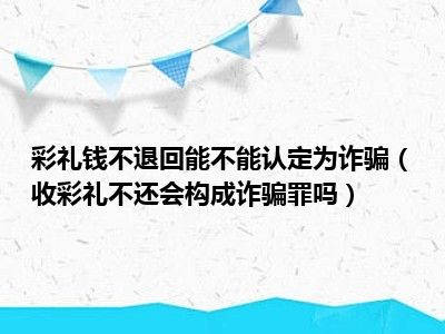 目前大家应该是对收彩礼不还会构成诈骗罪吗比较感兴趣的,所以今天CC就来为大家整理了一些关于收彩礼不还会构成诈骗罪吗方面的相关知识来分享给大家,希望大家会喜欢哦。