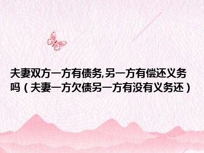 目前大家应该是对夫妻一方欠债另一方有没有义务还比较感兴趣的,所以今天CC就来为大家整理了一些关于夫妻一方欠债另一方有没有义务还方面的相关知识来分享给大家,希望大家会喜欢哦。