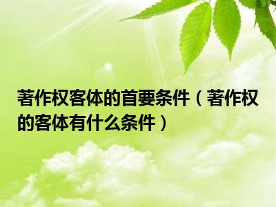 目前大家应该是对著作权的客体有什么条件比较感兴趣的,所以今天CC就来为大家整理了一些关于著作权的客体有什么条件方面的相关知识来分享给大家,希望大家会喜欢哦。