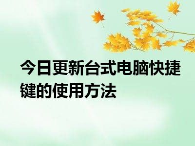 目前上述的内容应该能够为大家解答出大家对于台式电脑快捷键的使用方法的疑惑了,所以如果大家还想要了解更多的知识内容,也可以关注本站其他文章进行了解哦。