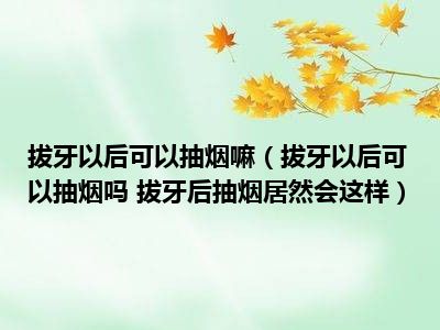 目前大家应该是对拔牙以后可以抽烟吗 拔牙后抽烟居然会这样比较感兴趣的,所以今天小编CC就来为大家整理了一些关于拔牙以后可以抽烟吗 拔牙后抽烟居然会这样方面的相关知识来分享给大家,希望大家会喜欢哦。