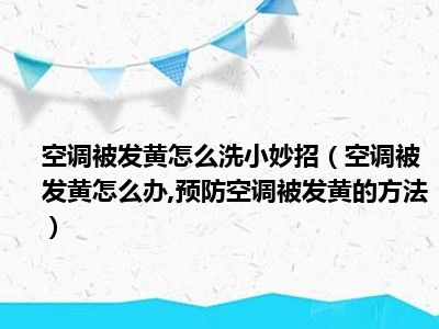 目前大家应该是对空调被发黄怎么办,预防空调被发黄的方法比较感兴趣的,所以今天小编CC就来为大家整理了一些关于空调被发黄怎么办,预防空调被发黄的方法方面的相关知识来分享给大家,希望大家会喜欢哦。