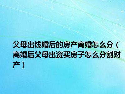 目前大家应该是对离婚后父母出资买房子,怎么分割财产比较感兴趣的,所以今天CC就来为大家整理了一些关于离婚后父母出资买房子,怎么分割财产方面的相关知识来分享给大家,希望大家会喜欢哦。