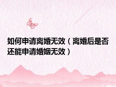 目前大家应该是对离婚后是否还能申请婚姻无效比较感兴趣的,所以今天CC就来为大家整理了一些关于离婚后是否还能申请婚姻无效方面的相关知识来分享给大家,希望大家会喜欢哦。