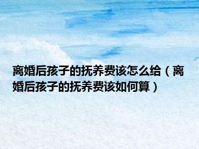 目前大家应该是对离婚后孩子的抚养费该如何算比较感兴趣的,所以今天CC就来为大家整理了一些关于离婚后孩子的抚养费该如何算方面的相关知识来分享给大家,希望大家会喜欢哦。
