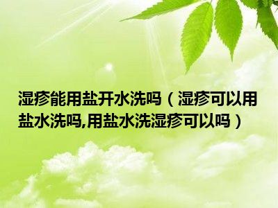 目前大家应该是对湿疹可以用盐水洗吗,用盐水洗湿疹可以吗比较感兴趣的,所以今天小编CC就来为大家整理了一些关于湿疹可以用盐水洗吗,用盐水洗湿疹可以吗方面的相关知识来分享给大家,希望大家会喜欢哦。