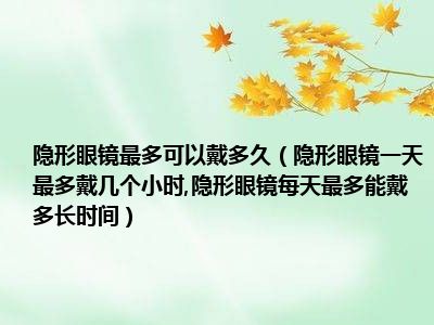 目前大家应该是对隐形眼镜一天最多戴几个小时,隐形眼镜每天最多能戴多长时间比较感兴趣的,所以今天小编CC就来为大家整理了一些关于隐形眼镜一天最多戴几个小时,隐形眼镜每天最多能戴多长时间方面的相关知识来分享给大家,希望大家会喜欢哦。