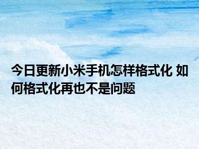目前上述的内容应该能够为大家解答出大家对于小米手机怎样格式化 如何格式化再也不是问题的疑惑了,所以如果大家还想要了解更多的知识内容,也可以关注本站其他文章进行了解哦。