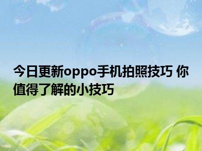 目前上述的内容应该能够为大家解答出大家对于oppo手机拍照技巧 你值得了解的小技巧的疑惑了,所以如果大家还想要了解更多的知识内容,也可以关注本站其他文章进行了解哦。