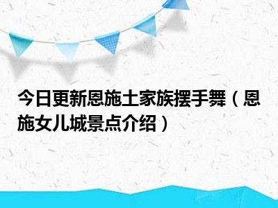 目前上述的内容应该能够为大家解答出大家对于恩施土家族摆手舞(恩施女儿城景点介绍)的疑惑了,所以如果大家还想要了解更多的知识内容,也可以关注本站其他文章进行了解哦。