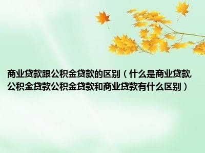 导读 目前大家应该是对什么是商业贷款,公积金贷款公积金贷款和商业贷款有什么区别比较感兴趣的,所以今天好房网小编CC就来为大家整理了一些关于