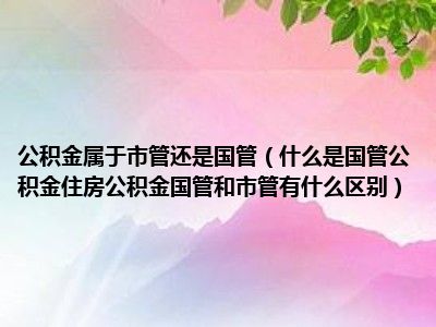 导读 目前大家应该是对什么是国管公积金住房公积金国管和市管有什么区别比较感兴趣的,所以今天好房网小编CC就来为大家整理了一些关于什么是国管