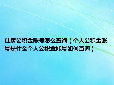 导读 目前大家应该是对个人公积金账号是什么个人公积金账号如何查询比较感兴趣的,所以今天好房网小编CC就来为大家整理了一些关于个人公积金账号