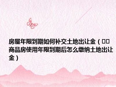 导读 目前大家应该是对商品房使用年限到期后怎么缴纳土地出让金比较感兴趣的,所以今天好房网小编CC就来为大家整理了一些关于商品房使用