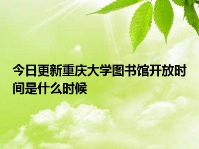目前大家应该是对重庆大学图书馆开放时间是什么时候比较感兴趣的,所以今天好房网小编CC就来为大家整理了一些关于重庆大学图书馆开放时间是什么时候方面的相关知识来分享给大家,希望大家会喜欢哦。