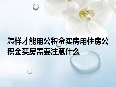 购房人在买房的时候要事先咨询当地公积金中心,根据自身情况做出适合自己的选择。怎么用住房公积金买房?用住房公积金买房要注意哪些问题?一、怎么用公积金买房?想用公积金买房,那就要申请公积金贷款,具体流程如下:提出申请借款人按照要求向公积金管理中心提交贷款申请,并且提供贷款所需的资料。中心初审公积金管理中心受理了借款人的申请之后,会对借款人的资格、贷款额度、贷款期限、贷款资料等信息进行审核,并给出意见。资信调查公积金管理中心的初审结束之后,公积金贷款的承办银行会对借款人进行贷前资信调查。调查完毕后,贷款银行会提出意见,并填制《个人住房公积金贷款及组合贷款调查审批表》送有关人员审批。签订借款合同借款人若是通过了审核,便会接到贷款承办银行的通知。这个时候,借款人需按照规定时间携带身份证、户口薄、银行卡等资料,前往承办银行办理借款合同签订手续。办理保险及抵押登记手续签订了借款合同之后,借款人需按照要求办理保险和抵押登记手续,由此而产生的费用将由借款人自己承担。贷款划拨在贷款承办银行确认抵押登记已办妥、借款合同生效后,按合同约定日期将贷款转入借款人与售房人共同指定的账户,并将放款回单寄送给借款人。二、用住房公积金买房要注意什么?公积金不能直接用作购房**很多人都认为公积金是可以用来当做购房**的,其实不是这样的。一般来说,公积金都是先使用后提取的,也就是说,若要用公积金贷款买房,就要先垫付**款,然后再携带本人或夫妻双方的身份证、户口薄等证明材料到当地住房公积金管理中心提取公积金余额才可以。公积金的提取总额不能超过房款总额有部分人缴存的住房公积金的数额比较大,可能账户里有50万元,但是他的购房总额是30万元,他以为自己可以将公积金余额全部提出,支付完了房款还能剩余20万,但实际并非如此。住房公积金的提取总额不能超过房款总额,就算你的账户里有50万,但只要你所购房屋的总结不足50万,一样不可以全额提取。结清公积金贷款后可以再用公积金购房如果你申请过公积金贷款,公积金中心的系统上就会有相应的记录,只要你的贷款还没有还清,你或者是你的配偶都无法再次办理公积金贷款。但是,如果你已经结清了之前的贷款,你就可以再次申请公积金贷款购房。申请贷款时职工或其配偶正常缴存按月住房补贴的,参照正常缴存补充住房公积金的规定执行。