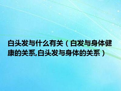 目前大家应该是对白发与身体健康的关系,白头发与身体的关系比较感兴趣的,所以今天小编CC就来为大家整理了一些关于白发与身体健康的关系,白头发与身体的关系方面的相关知识来分享给大家,希望大家会喜欢哦。