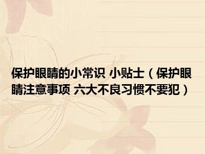 目前大家应该是对保护眼睛注意事项 六大不良习惯不要犯比较感兴趣的,所以今天小编CC就来为大家整理了一些关于保护眼睛注意事项 六大不良习惯不要犯方面的相关知识来分享给大家,希望大家会喜欢哦。