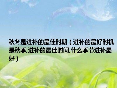 目前大家应该是对进补的最好时机是秋季,进补的最佳时间,什么季节进补最好比较感兴趣的,所以今天小编CC就来为大家整理了一些关于进补的最好时机是秋季,进补的最佳时间,什么季节进补最好方面的相关知识来分享给大家,希望大家会喜欢哦。