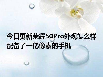 目前上述的内容应该能够为大家解答出大家对于荣耀50Pro外观怎么样,配备了一亿像素的手机的疑惑了,所以如果大家还想要了解更多的知识内容,也可以关注本站其他文章进行了解哦。