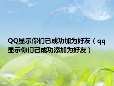 导读 1、qq显示你们已成功添加为好友2、qq显示你们已成功添加为好友说明你和对方已经成为朋友,也就是好友添加成功。3、QQ是腾讯QQ的简称,是一