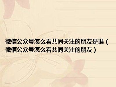 导读 1、微信公众号怎么看共同关注的朋友2、微信官方账号看不到互相关心的好友。微信还没有这个功能。通过微信官方账号,用户可以在微信平台上实