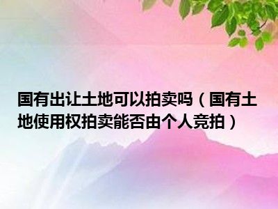 目前大家应该是对国有土地使用权拍卖能否由个人竞拍比较感兴趣的,所以今天CC就来为大家整理了一些关于国有土地使用权拍卖能否由个人竞拍方面的相关知识来分享给大家,希望大家会喜欢哦。