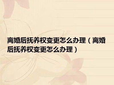 目前大家应该是对离婚后抚养权变更怎么办理比较感兴趣的,所以今天CC就来为大家整理了一些关于离婚后抚养权变更怎么办理方面的相关知识来分享给大家,希望大家会喜欢哦。