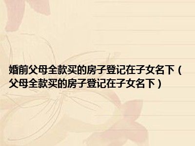 目前大家应该是对父母全款买的房子登记在子女名下比较感兴趣的,所以今天CC就来为大家整理了一些关于父母全款买的房子登记在子女名下方面的相关知识来分享给大家,希望大家会喜欢哦。