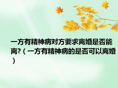 目前大家应该是对一方有精神病的是否可以离婚比较感兴趣的,所以今天CC就来为大家整理了一些关于一方有精神病的是否可以离婚方面的相关知识来分享给大家,希望大家会喜欢哦。