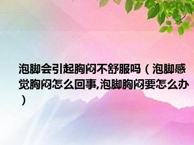 目前大家应该是对泡脚感觉胸闷怎么回事,泡脚胸闷要怎么办比较感兴趣的,所以今天小编CC就来为大家整理了一些关于泡脚感觉胸闷怎么回事,泡脚胸闷要怎么办方面的相关知识来分享给大家,希望大家会喜欢哦。
