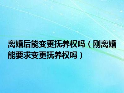 目前大家应该是对刚离婚能要求变更抚养权吗比较感兴趣的,所以今天CC就来为大家整理了一些关于刚离婚能要求变更抚养权吗方面的相关知识来分享给大家,希望大家会喜欢哦。