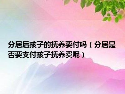 目前大家应该是对分居是否要支付孩子抚养费呢比较感兴趣的,所以今天CC就来为大家整理了一些关于分居是否要支付孩子抚养费呢方面的相关知识来分享给大家,希望大家会喜欢哦。