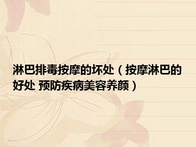 目前大家应该是对按摩淋巴的好处 预防疾病美容养颜比较感兴趣的,所以今天小编CC就来为大家整理了一些关于按摩淋巴的好处 预防疾病美容养颜方面的相关知识来分享给大家,希望大家会喜欢哦。