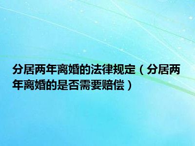 目前大家应该是对分居两年离婚的是否需要赔偿比较感兴趣的,所以今天CC就来为大家整理了一些关于分居两年离婚的是否需要赔偿方面的相关知识来分享给大家,希望大家会喜欢哦。