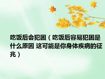 目前大家应该是对吃饭后容易犯困是什么原因 这可能是你身体疾病的征兆比较感兴趣的,所以今天小编CC就来为大家整理了一些关于吃饭后容易犯困是什么原因 这可能是你身体疾病的征兆方面的相关知识来分享给大家,希望大家会喜欢哦。